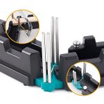 Nincs kalibráció, nincs beállítás, nincs szükség próba vágásra. Nyissa ki a karokat a sarokhoz igazítva, rögzítse a szöget, helyezze a vezetőt az anyagra, és vágjon – kevesebb mint 30 másodperc alatt elkészül vágásonként. A rozsdamentes acél karok megtartják a pozíciót, így a szög vágás közben nem változik.