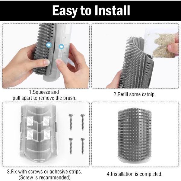 A macskáknak időbe telhet, amíg alkalmazkodnak ezekhez a sarokmacskakefékhez, és fokozhatja az érdeklődésüket egy csipetnyi macskamenta hozzáadásával (nem tartozék).