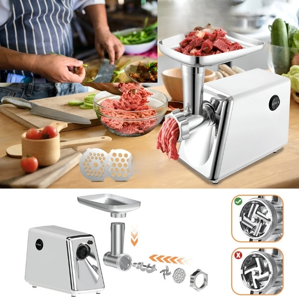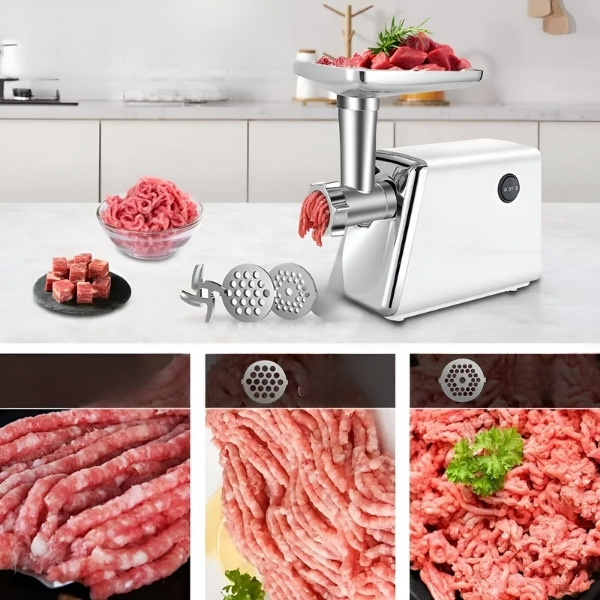 📦 Elektromos húsdaráló + ételtoló + 2x vágólemez + 1x penge.