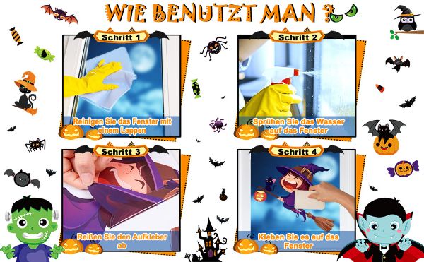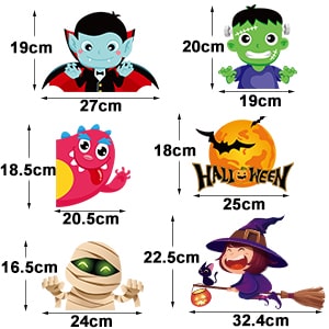 A csomag tartalma 30 ablakmatrica amelyek rajzfilmeket, boszorkányokat és csontvázakat ábrázolnak— tökéletesek hátborzongató, aranyos vagy klasszikusan ijesztő dekorációhoz.