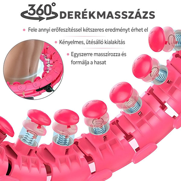 A mágneses csatlakozó szegmenseknek és a 360°-os masszázsfejeknek köszönhetően a hulahoppkarika biztonságosan a helyén marad, így ideális fitneszeszköz még kezdők számára is.