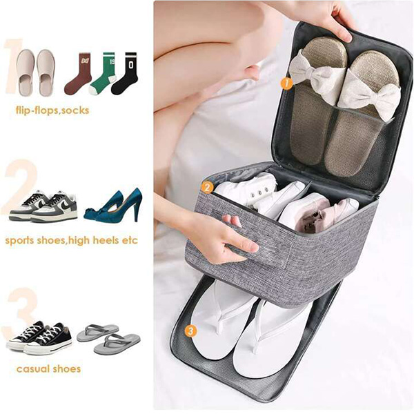 Tartsa rendben cipőit utazás közben. A többrétegű kialakításnak köszönhetően cipőit külön-külön tárolhatja, minden pár külön rekeszben.